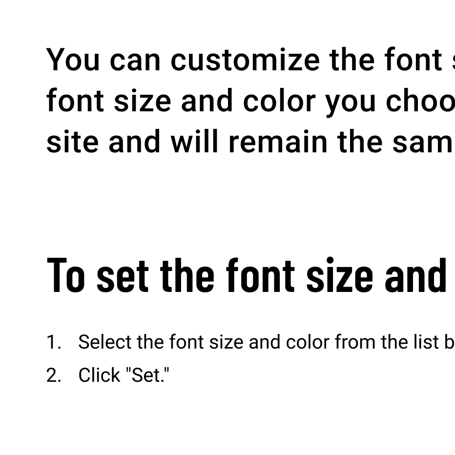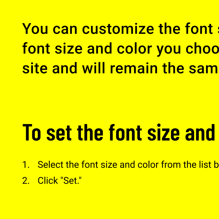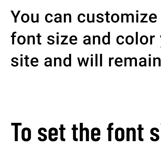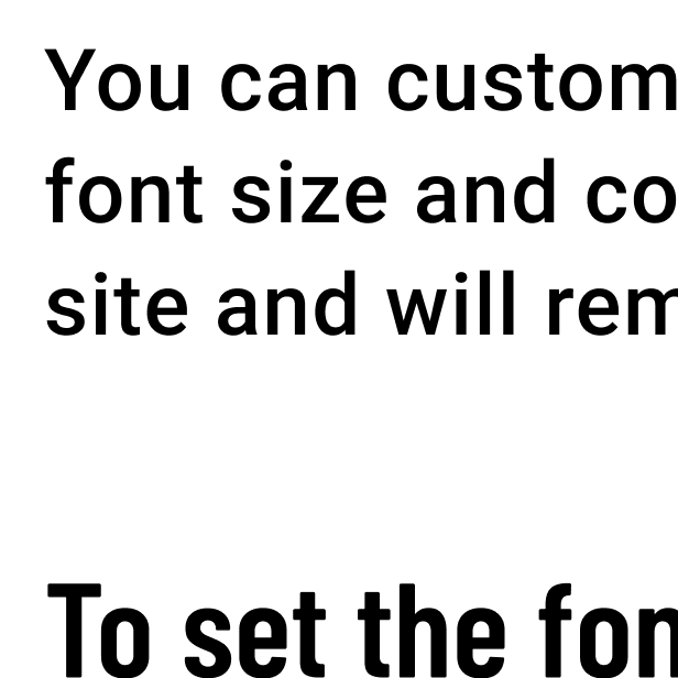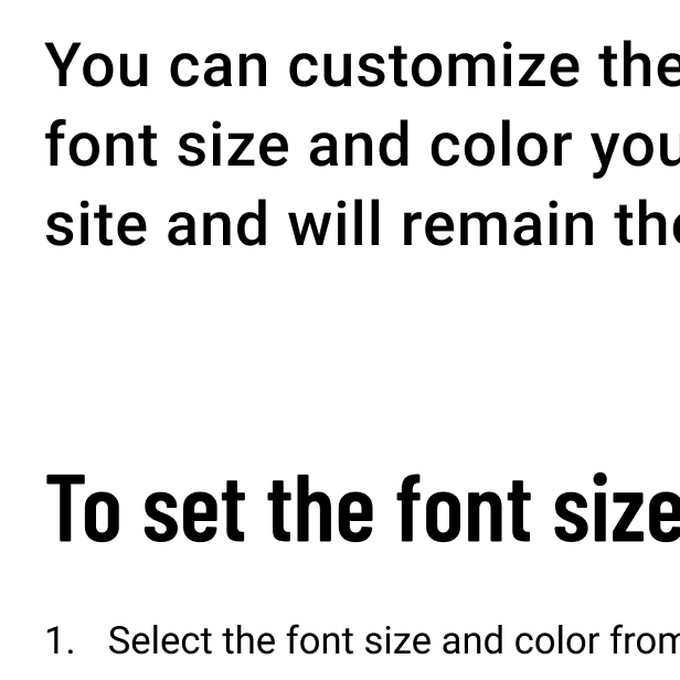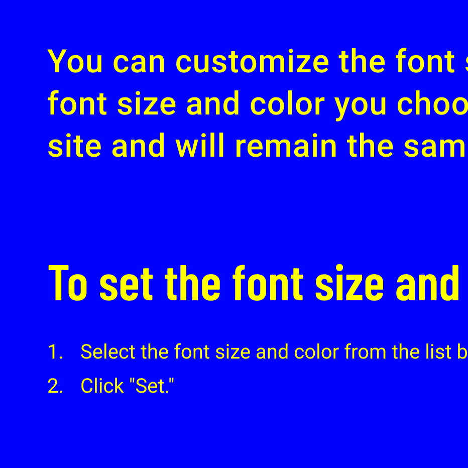 You can customize the font size and color of this website. The font size and color you choose will apply to all pages on the site and will remain the same the next time you visit.