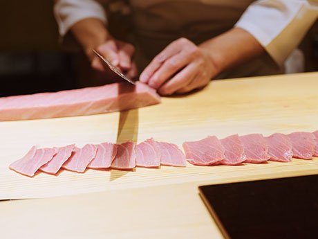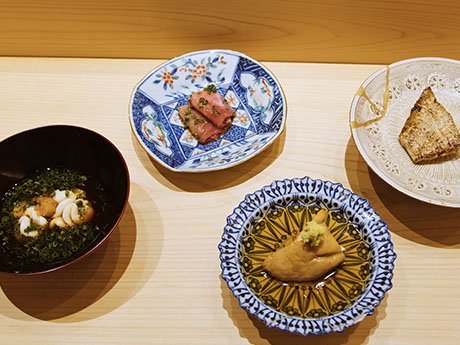At SUSHI SHIOGAMAKOU GINZA KIWAMI, you can experience an omakase sushi course brimming with some of the freshest tuna delivered directly from the source.