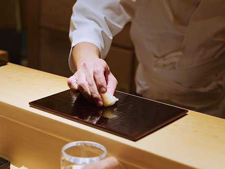 Hamada explained that the key to Head Chef Saito Takashi's sushi is the shari (vinegared sushi rice). “You feel like each piece of rice is coated in vinegar, and [it] hasn't really sunk into each of the grains,” Hamada said. Chef Saito also changes the temperature of the shari as needed, using hot or cold rice depending on the fish. Preparation of the ingredients is just as critical as assembling the sushi.