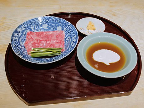 The restaurant procures top-quality Omi beef from Shiga Prefecture and sources the wagyu from a renowned butcher shop. The remaining ingredients are also carefully selected from around the country. Their tofu is from Kyoto, a city famous for its soft spring water, which plays a crucial role in achieving the smooth texture that makes the tofu exceptional. They've selected onions from Awaji Island in the Seto Inland Sea for their sweetness, and special potatoes aged over two years for an uncharacteristically sweet flavor are from Hokkaido. Raw eggs, an essential sukiyaki component, have been sourced from Mie Prefecture for their sweet yolks. These ingredients are combined masterfully by experienced chefs to create a meal of diverse flavors best enjoyed in Tokyo.