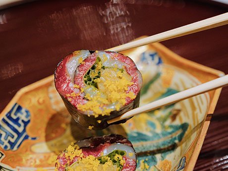 The restaurant procures its fish from Shiogama, a port city with the highest tuna catch volume in Japan. You won't just experience sushi. You'll also savor the flavors of tuna in sashimi, slightly seared steak, sukiyaki and futomaki (thick sushi roll), among others. You'll enjoy every part of the tuna, each prepared with the utmost skill by experienced chefs.