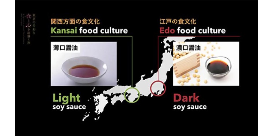 In Kyoto, which is located inland, vegetable-based dishes developed using light soy sauce to highlight the colors of the vegetables. In contrast, Edo, situated near the sea, favored bold flavors using dark soy sauce to complement the richness of fresh seafood.