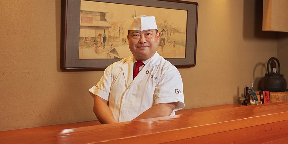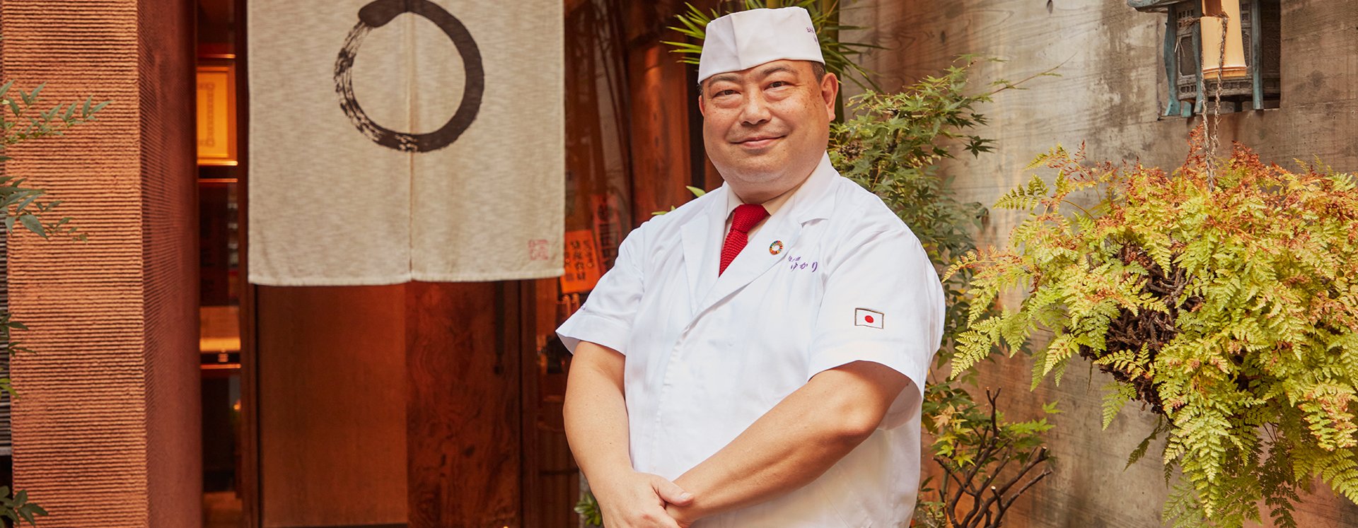 Born and raised in Nihonbashi, Chef Kimio Nonaga is an edokko—a “child of Edo,” so the spirit of Edo runs deep in his roots. Nihonbashi is an area of Tokyo where tradition and innovation converge, preserving its long history and traditions while modern skyscrapers rise up alongside older, historic structures. Atop the bridge of Nihonbashi (Japan Bridge) is the official “mile zero” for Japan’s five traditional highways, making this area both a commercial hub and a symbolic gateway.