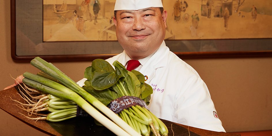 “In everything we do, we are supported by dozens of individuals. I feel responsible for sharing Tokyo’s abundance of excellent ingredients,” Nonaga explains. “When guests come here, I want them to know that this leek is not just any leek—it’s a traditional Tokyo-grown variety.” Moreover, to deliver such local produce requires less fuel and manpower, and Tokyo chefs can always be sure of obtaining the finest fresh produce whenever they wish.