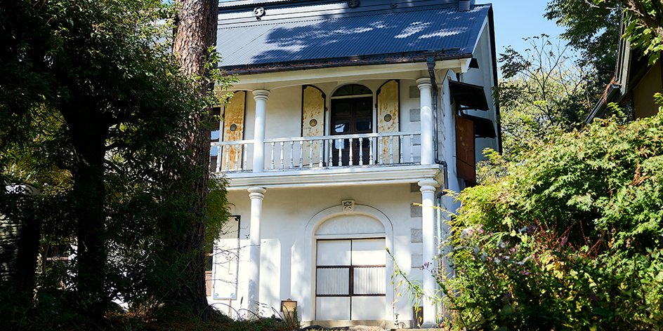 L'Arbre's exterior. Built around 1875, this Tokyo-designated Tangible Cultural Property blends Western and Japanese architecture, now repurposed as a distinctive restaurant.