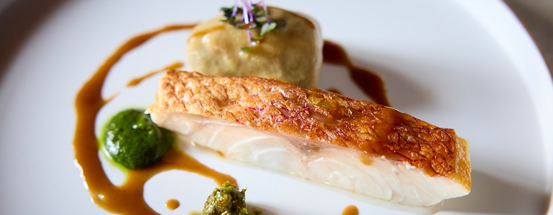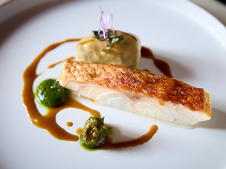 The fish dish features longtailed red snapper sourced fresh from Hachijo Island. The fish is cooked to ensure the skin is perfectly crispy while the flesh remains tender and juicy.