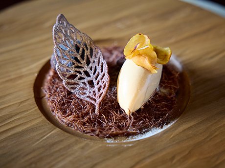 The plate is completed with dark beer ice cream from a historic 1863 brewery and a compote of locally grown black figs simmered in red wine.