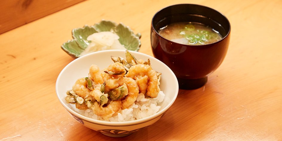 Kakiage―finely chopped seafood and vegetables fried together―is often served as the final dish in a course.